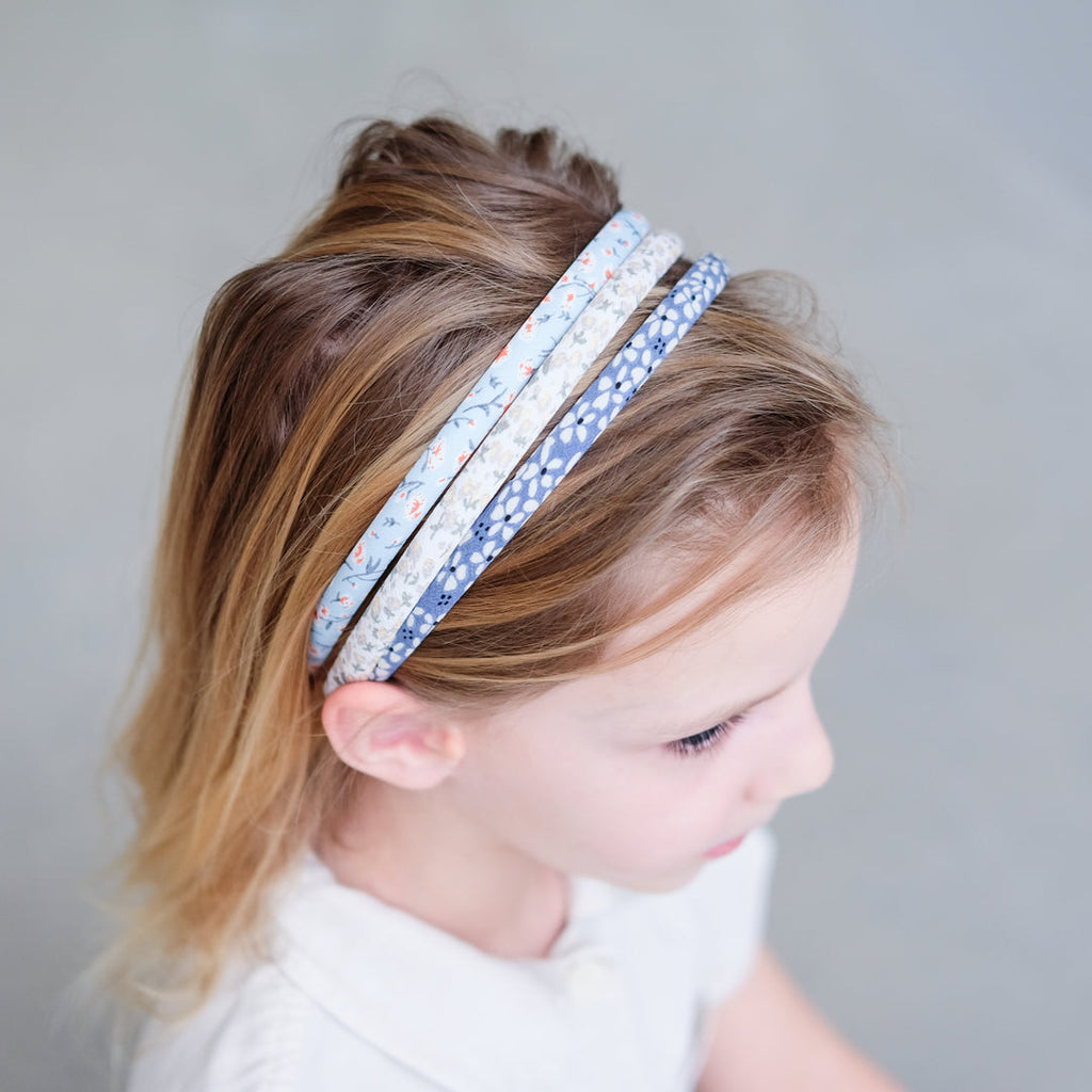 Un trío perfectamente bonito de bandas de Alicia en una hermosa mezcla de telas con estampados florales. ¡Estos funcionan maravillosamente usados uno a la vez, pero quedan aún más bonitos combinados!