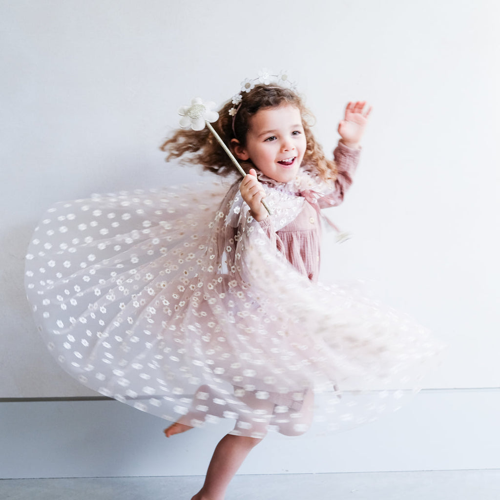 Daisy, Daisy, estamos emocionadas... ¡por esta nueva y preciosa capa de tul! ¡Un regalo encantador para cualquier pequeña hada de las flores! ¡Combina perfectamente con nuestro tutú, varita o tocado de margaritas!