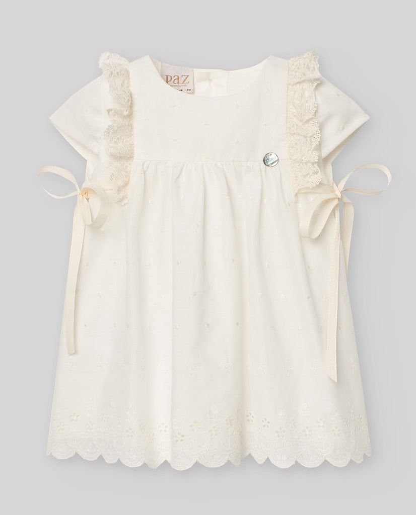 VESTIDO TELA BORDADA BAUTIZO "PAZ V25"