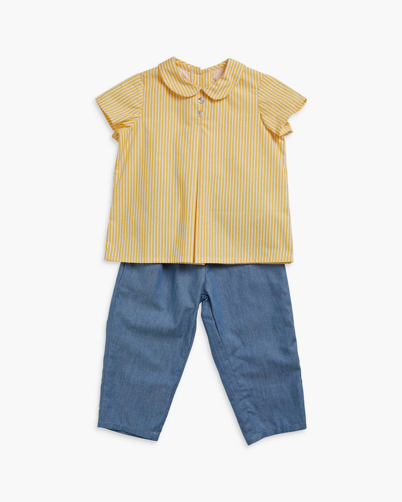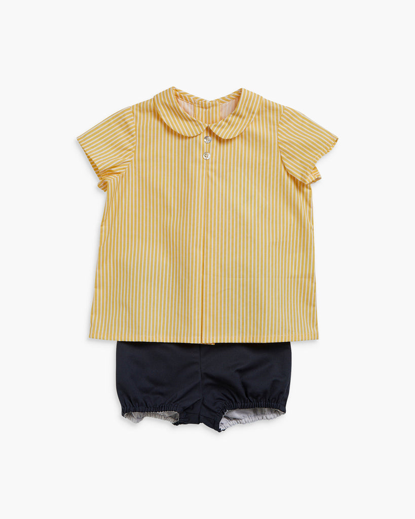 Experimente nuestro último diseño Darius con un refinado estampado de cuadros índigo. Esta pieza presenta dos exquisitos botones de nácar en el pliegue delantero para darle un toque de sofisticación. Confeccionada por expertos con una lujosa mezcla de algodón, esta camisa atemporal garantiza estilo y comodidad para su pequeño durante las estaciones más cálidas. Combínalo con nuestros pantalones bombachos y mamelucos para bebé niño para lograr una apariencia versátil y sencilla. Acentúe con barras en T para un acabado pulido.