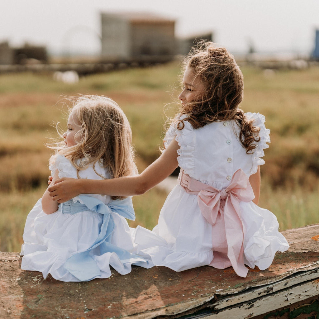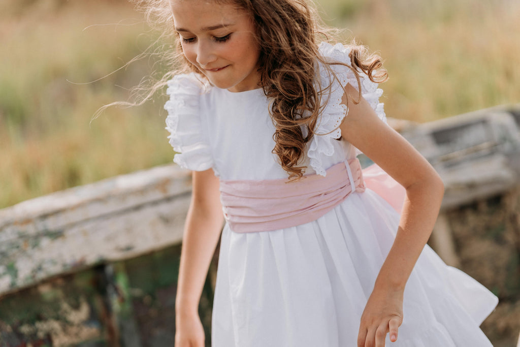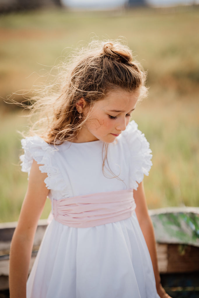 El fajín se ata en un lazo trasero. Con el vestido vienen dos fajines de colores, azul y rosa.