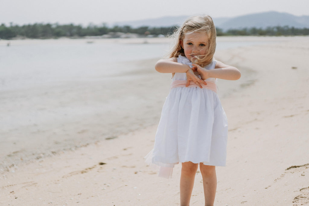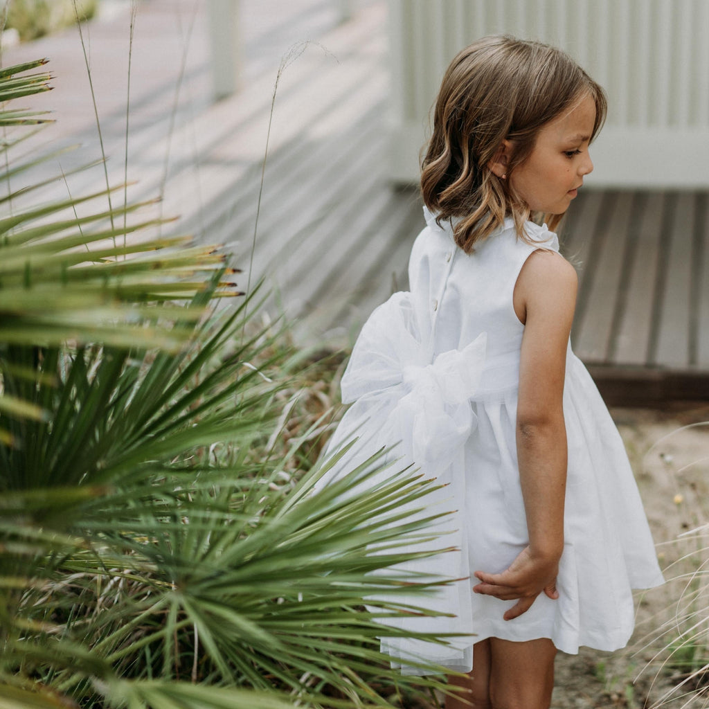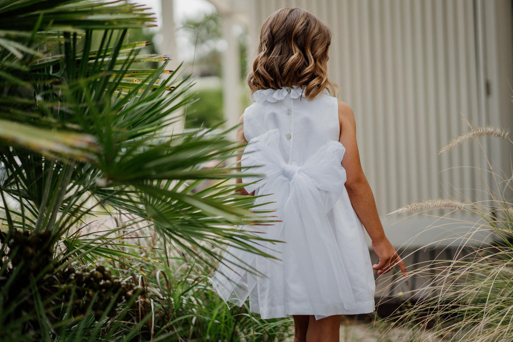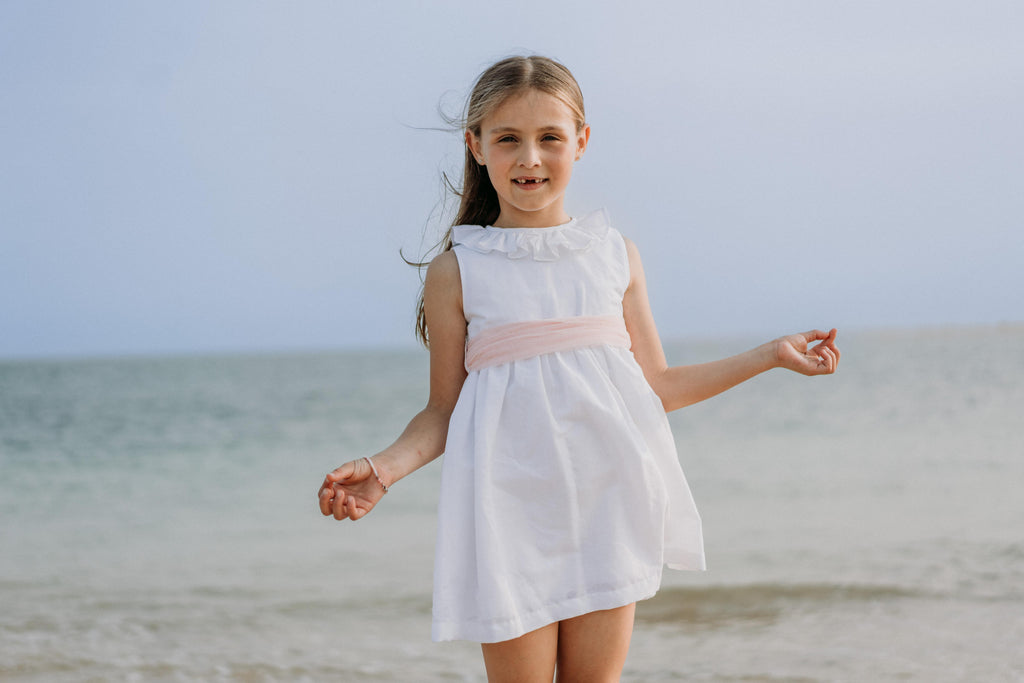 (3 piezas: 1 vestido y 2 lazos; Blanco y rosa)