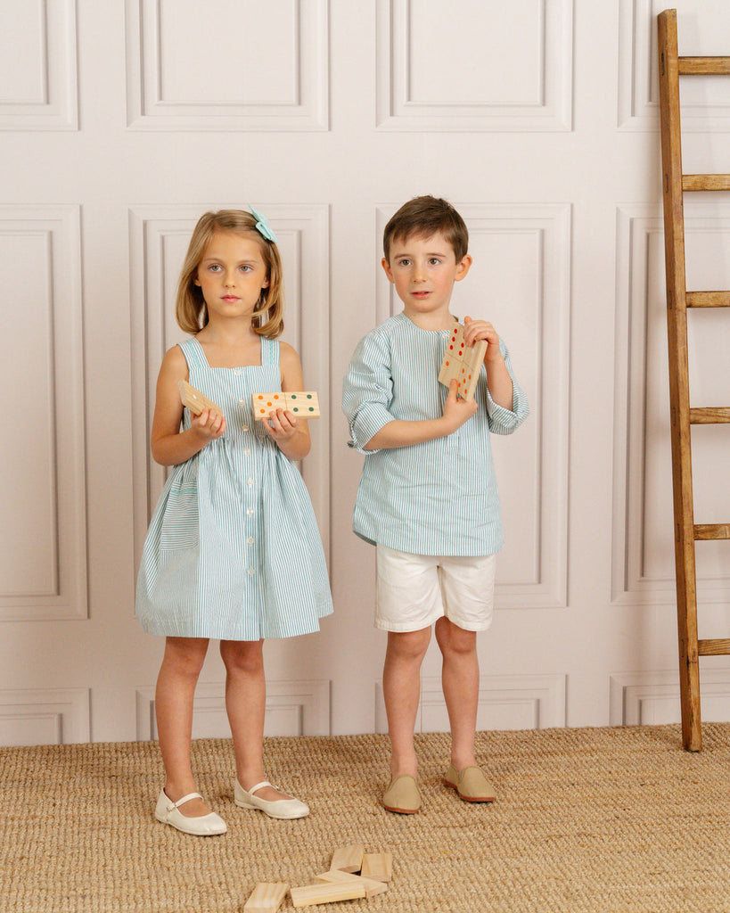 Sal con estilo con nuestra lujosa camisa Pereprine. Esta clásica camisa de manga larga con cuello mao para niño presenta una lujosa raya fucsia que seguro que llamará la atención. Esta camisa, confeccionada con un suave tejido de algodón de primera calidad y con una tapeta de botones de nácar, es una prenda básica versátil para cualquier armario. Combínala con nuestros pantalones cortos y pantalones a juego para conseguir un look encantador y elegante.