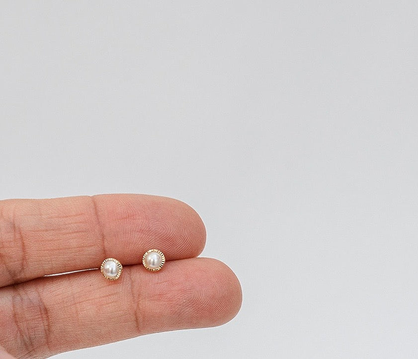 5mm de largo - Oro con circonias y perlitas - Para niñas de 18 meses en adelante