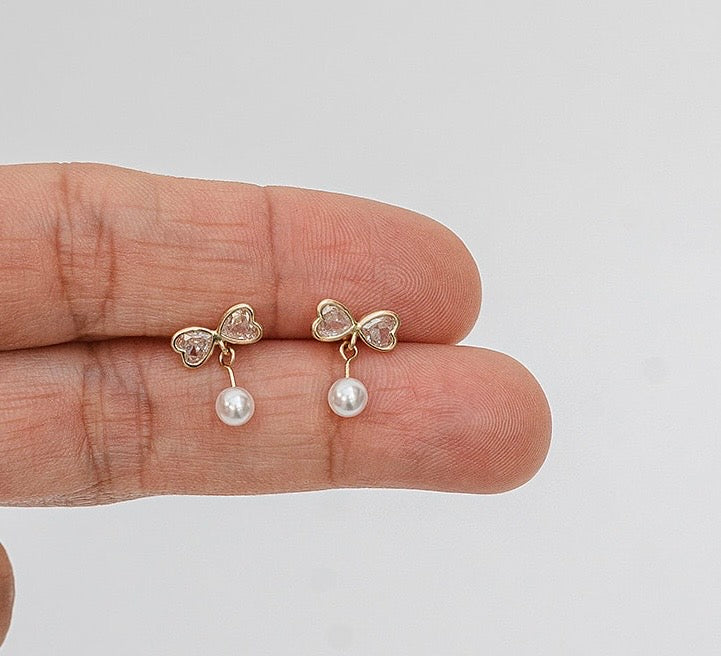 Moños con perlas colgantes 14K - M36