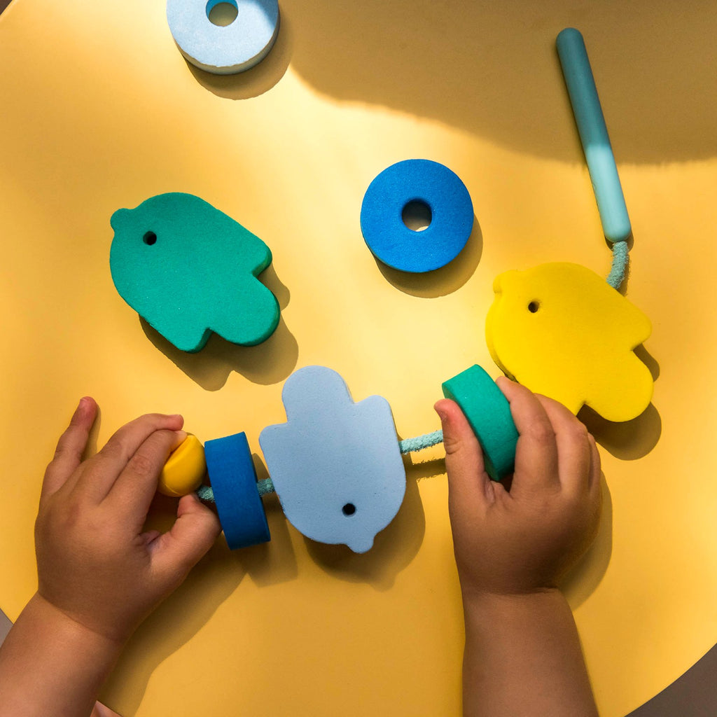 A partir de los 18 meses, podrán empezar a ensartar las cuentas con la aguja, estimulando su capacidad cognitiva y mejorando su coordinación ojo-mano.