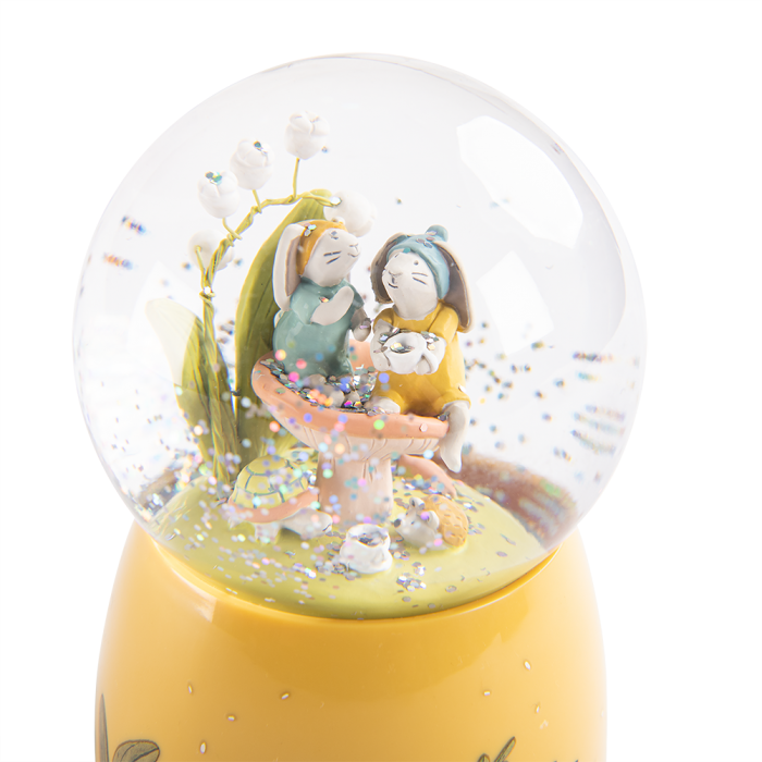 ¡En esta nueva colección, se trata de una bola de nieve musical con el conejito que están de fiesta en medio del brillo holográfico!