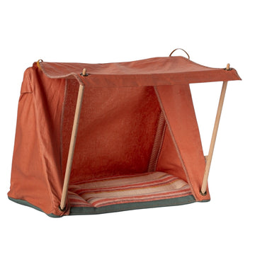 Lleva a tus ratones a una fiesta de pijamas en la tienda para acampar mas divertida! Los cilindros de madera pueden sostener la puerta de la tienda y protegerlos de la lluvia. La tela exterior tiene una superficie recubierta para un aspecto más auténtico. Recuerda que todos deben traer sus sacos de dormir!