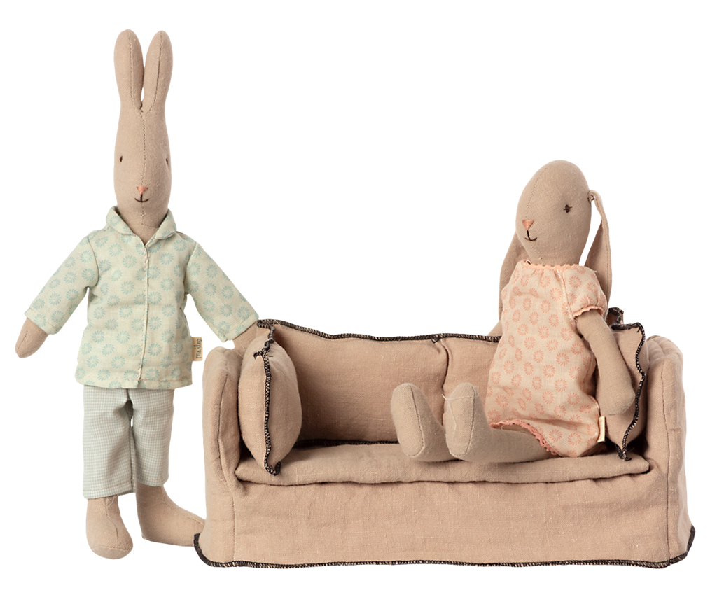 Tómate un descanso en este precioso sofá. Elaborado en base de madera, con una cubierta suave hecha de hermosa tela de lino de gran calidad. Combínalo con la mesa de café y encaja perfectamente en la casa de muñecas Maileg.