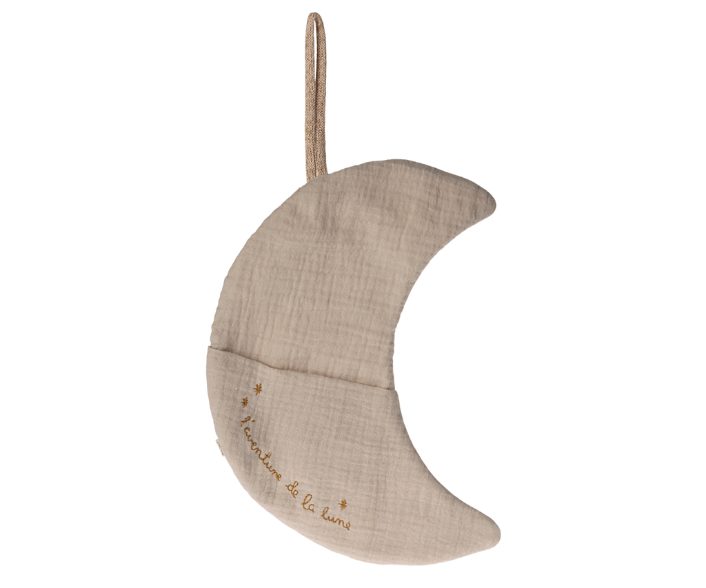 Cuando el día se convierte en noche la luna brilla con suavidad. Esta luna suave es perfecta para la decoración en la habitación de los niños. Tiene un pequeño bolsillo para guardar tu hada de los dientes y tiene un hermoso bordado en la parte delantera.