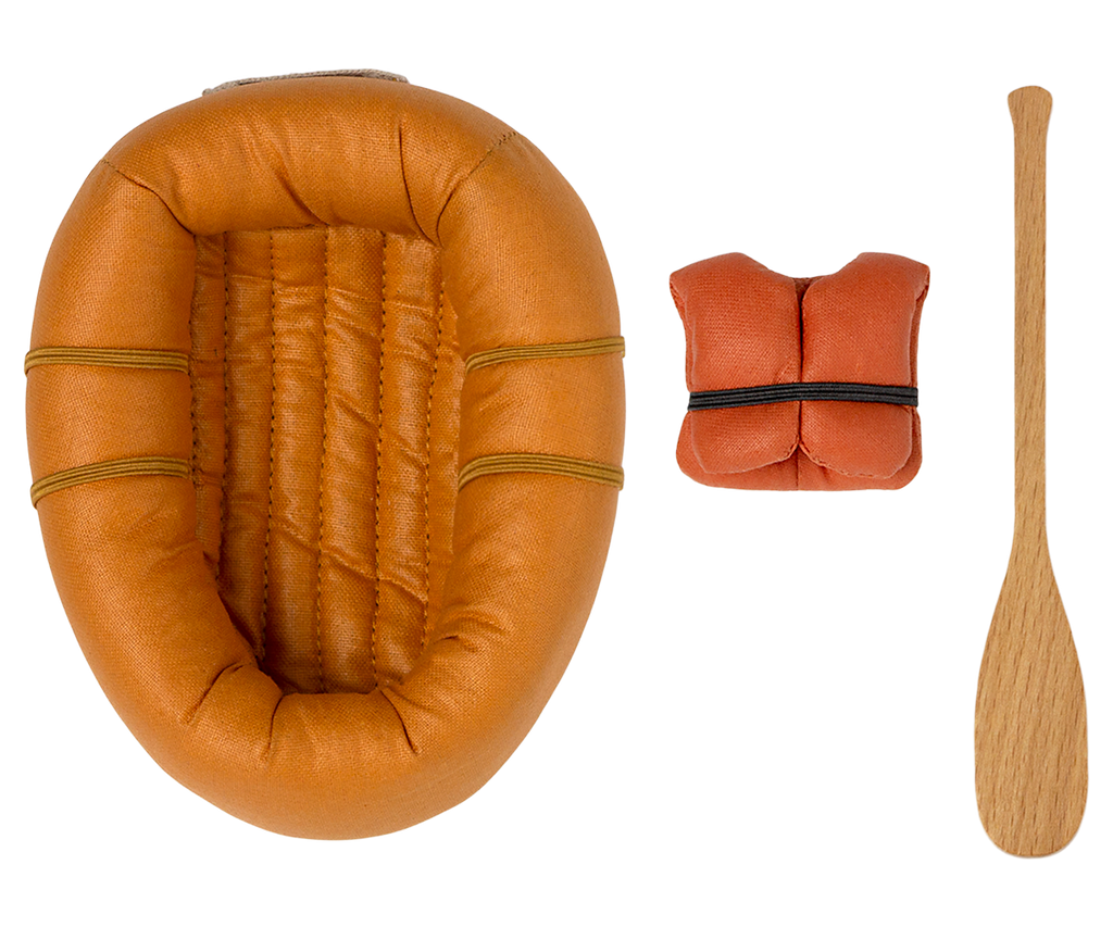 Este pequeño y divertido bote está hecho de tela y viene con un chaleco salvavidas y un remo. No es impermeable, así que tienes que imaginar que flota en el agua. ¡Ahora tus amigos ratones pueden disfrutar de una aventura acuática de juguete!