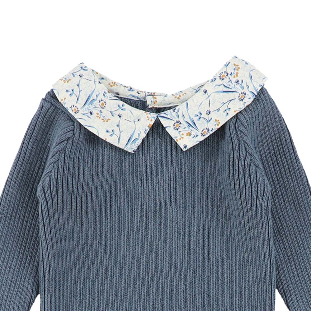 Mameluco Knit Collar With Bonnet - Azul