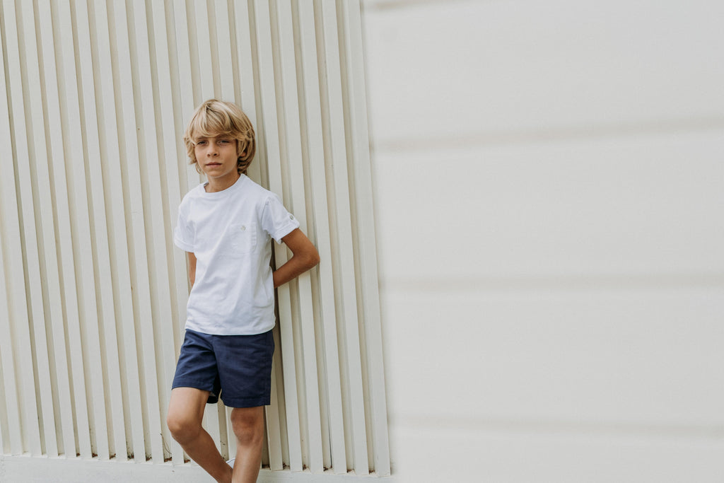 Bolsillo de lino y detalles en las mangas.