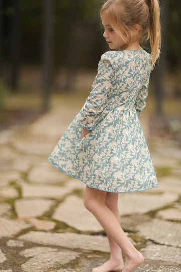Capers Dress - Long Sleeves - Large Leaves Blue