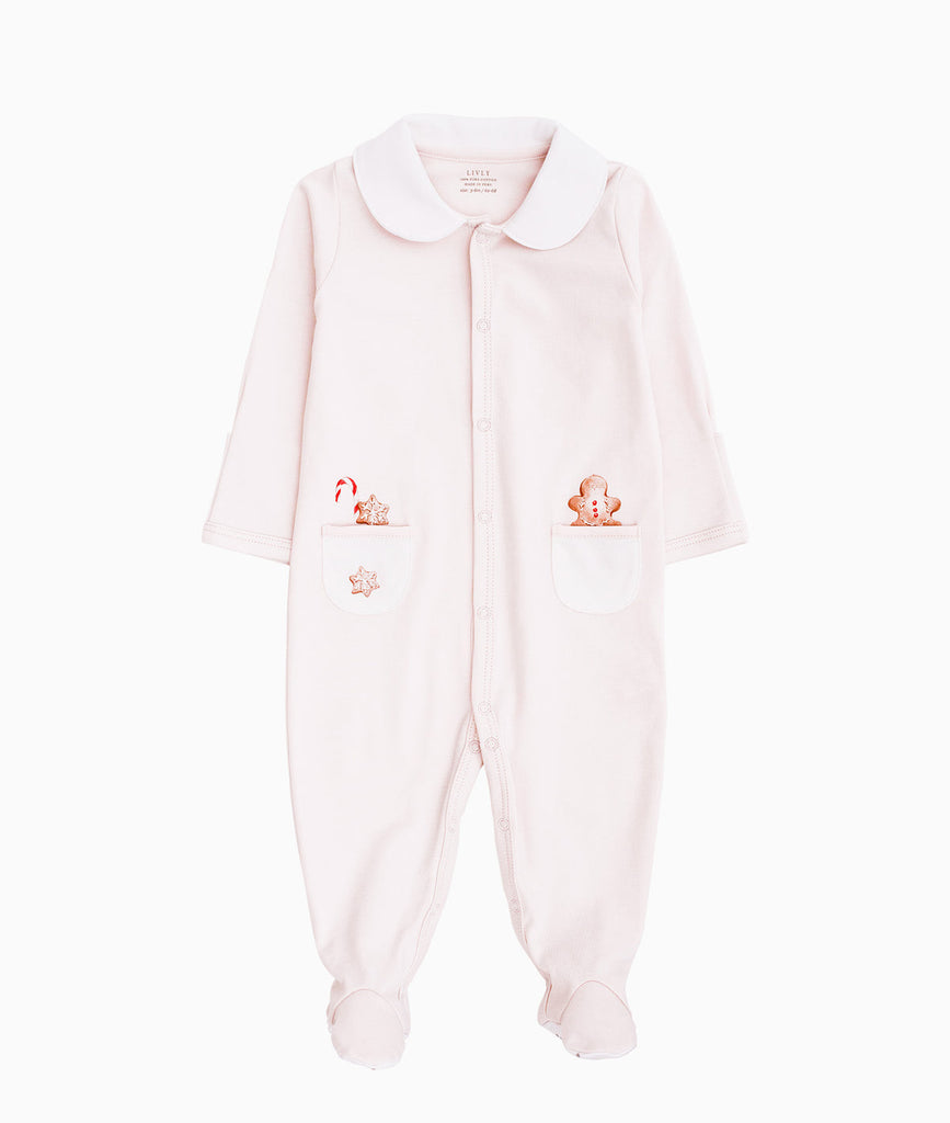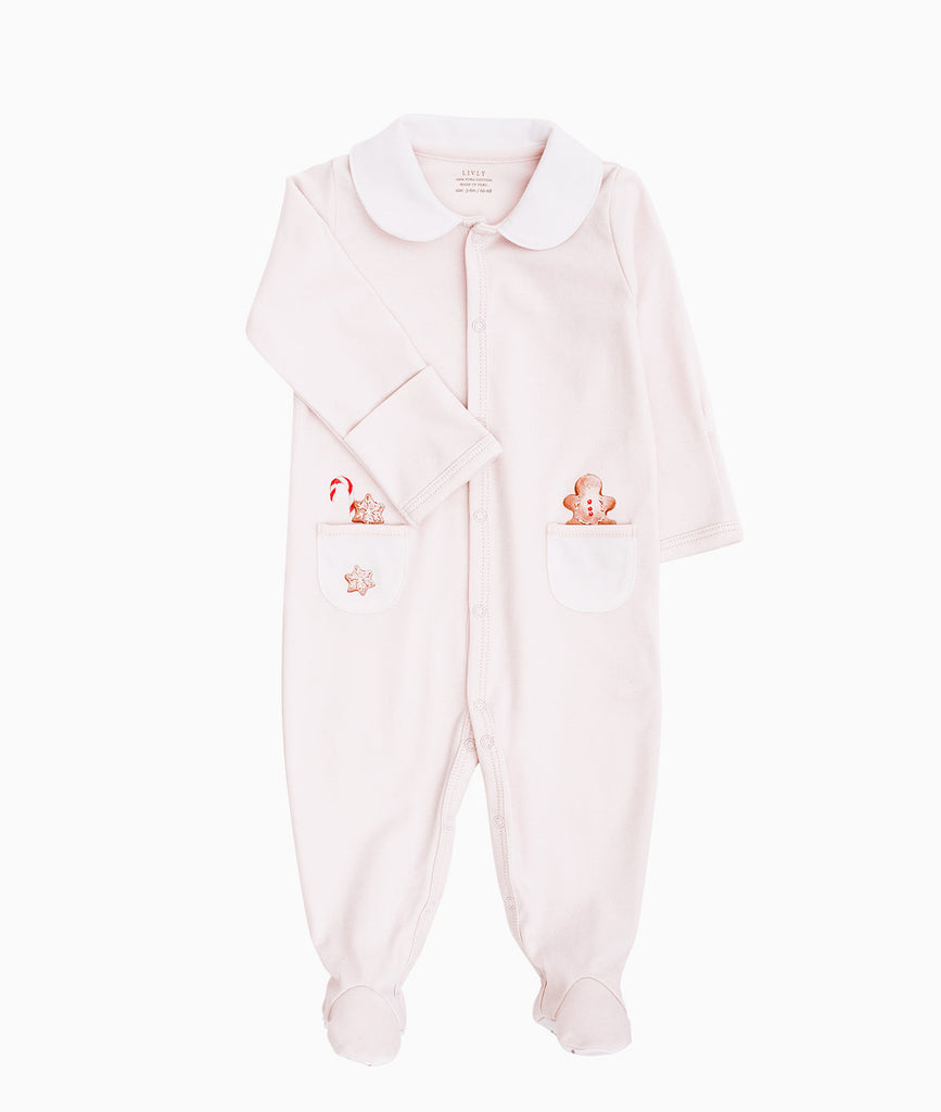 PINK LITTLE GINGERBREADS COLLAR FOOTIE - Pima Cotton